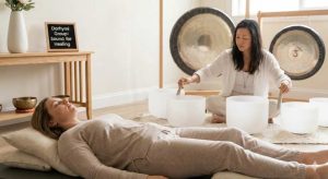 Sound based wellness practices use tone, vibration, and rhythm to create calming sensory experiences. Instruments such as crystal singing bowls produce sustained sounds that many people associate with deep relaxation.